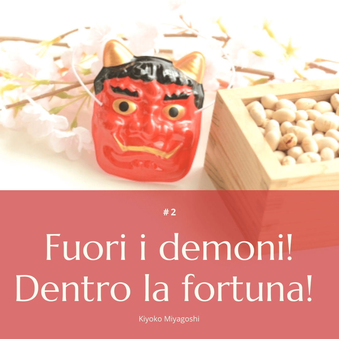 tradotto in italiano "Fuori i demoni! Dentro fortuna!". L'Oni è il demone, infatti generalmente un padre della famiglia indossa una maschera di demone, e i bambini gli tirano addosso i fagioli di soia esclamando "Oni wa soto! Fuku wa uchi!" 👹